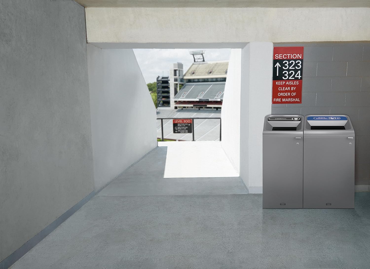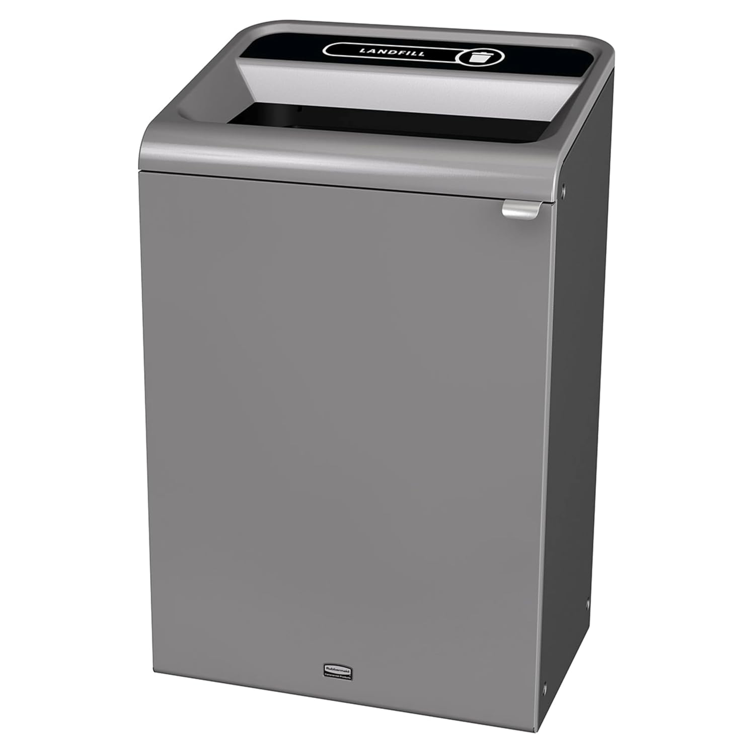 Rounded easy-glide feet allow the container to be moved efficiently while a color-coded label and single stream open top reliably collect up to 33 gallons of landfill garbage.