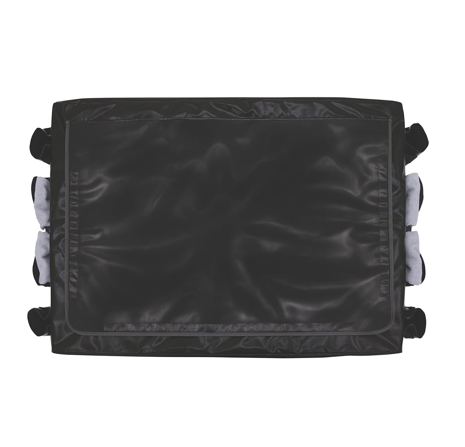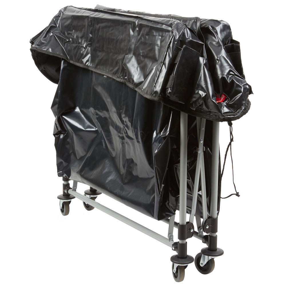 The Rubbermaid Commercial Cover for Collapsible X-Cart features multiple storage compartments to keep frequently used tools and cleaning supplies within reach.