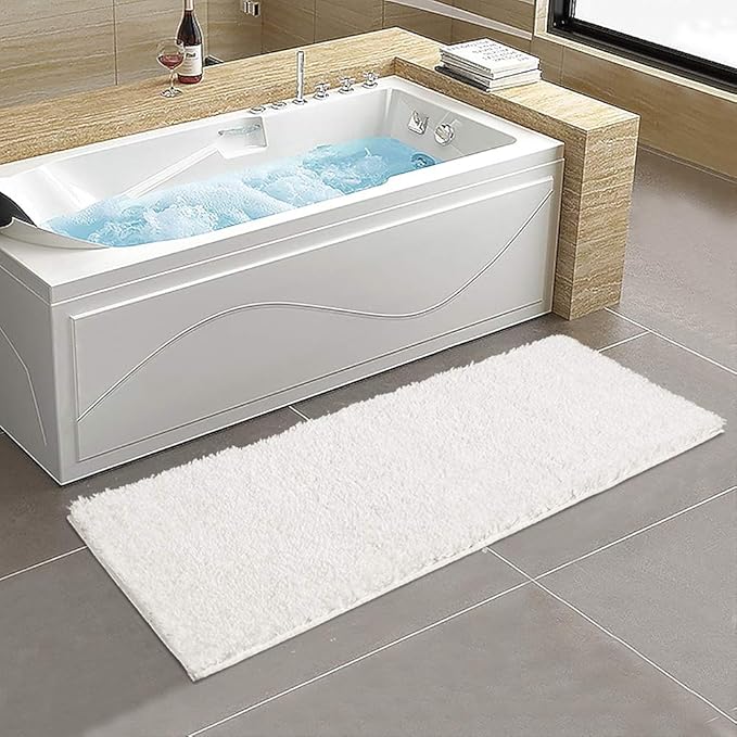 DESIGN: Approximately 120 x 45cm/47 x 18in. The brighten white color is easy to compliment your existing home decor and add luxury visual enjoy for you. Bathmat is perfect for bathroom, living room, bedroom. kitchen room other shower area.They are also great Thanksgiving and Christmas gifts to your friends and familes.