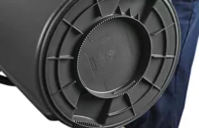 CONVENIENT: Rounded top handles and contoured base handles make lifting and moving the receptacle easier.