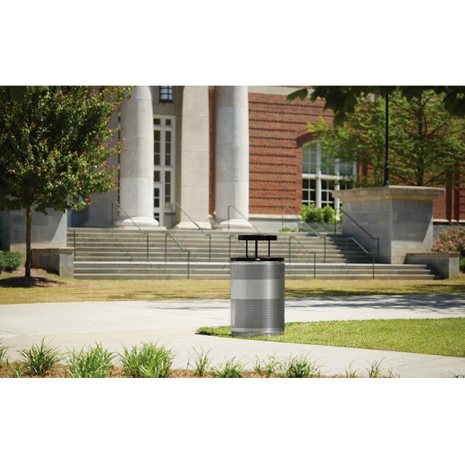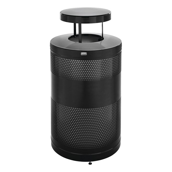 The heavy-duty Classics 51 Gallon FGS55 Open Top Decorative Waste Container has a perforated steel design for a clean and modern appearance