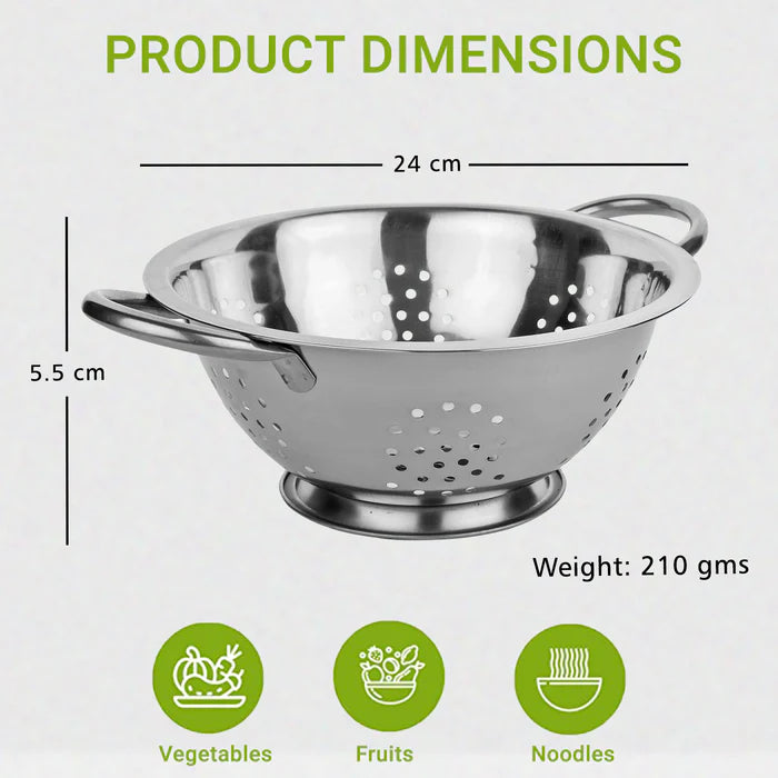 GREAT CAPACITY - We have carefully designed our straining colander from the customer's perspective. That is why we created a large sink strainer that will drain the water from a whole pot of food with only one use. This colander will help you to drain food and wash veggies, fruits or rice faster than ever.