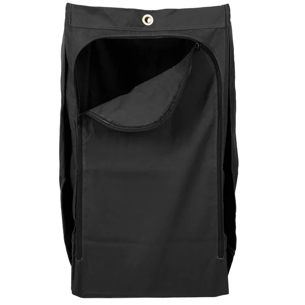 Collect bags of soiled linens quickly, easily, and discreetly with this Rubbermaid® 1966888 Executive 30 gallon black vinyl-lined canvas housekeeping cart bag! This 30 gallon bag features a sleek black coloring, great for discreet linen collection. Use it with a compatible housekeeping cart (sold separately) for quick cleanup in your hotel, motel, or bed and breakfast. The 6 eye-holes at the top of the bag allow it to fit most carts, ensuring a seamless integration into your existing housekeeping service.