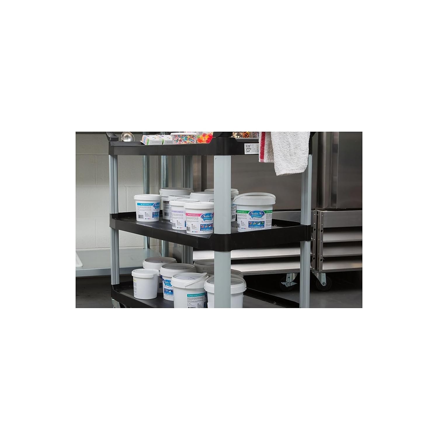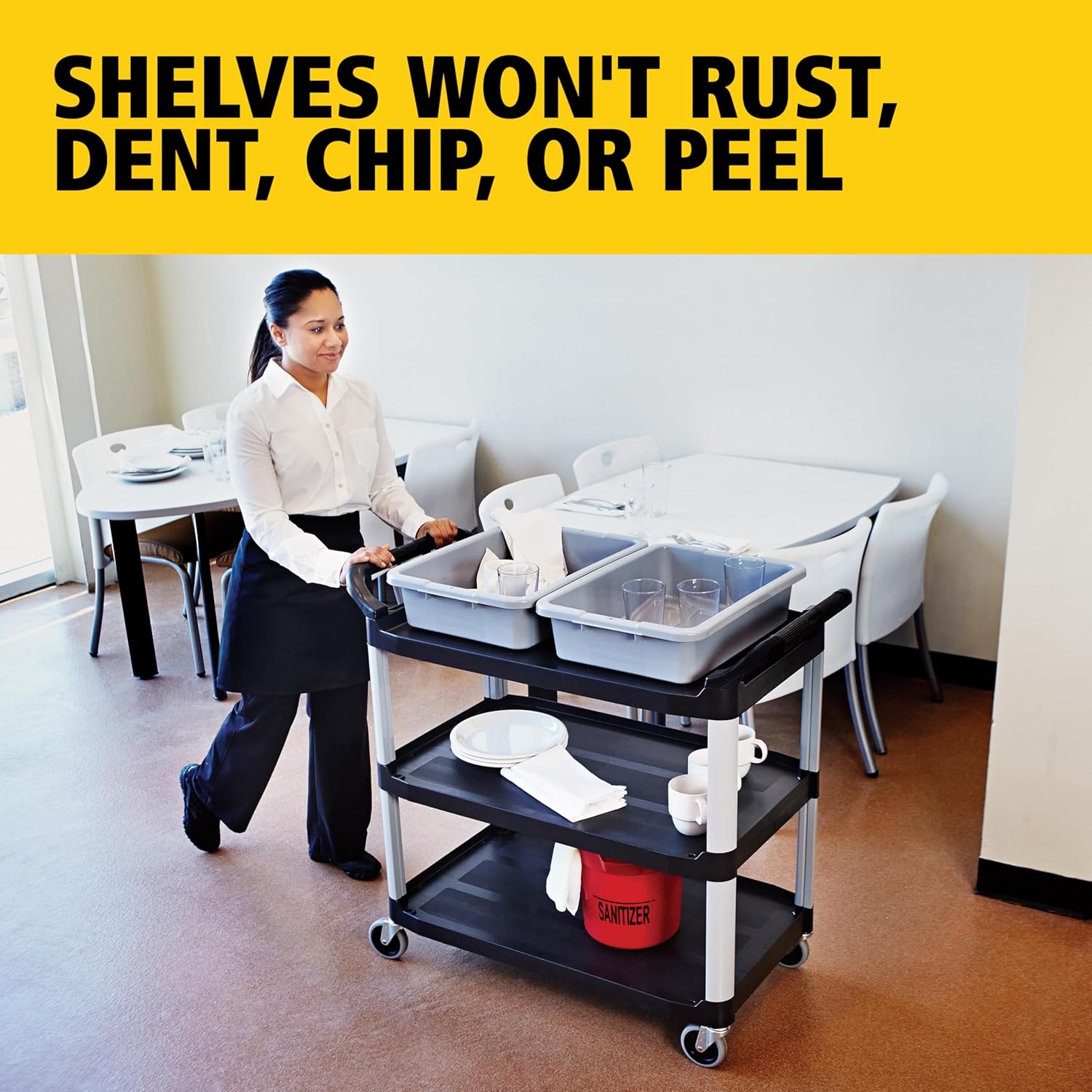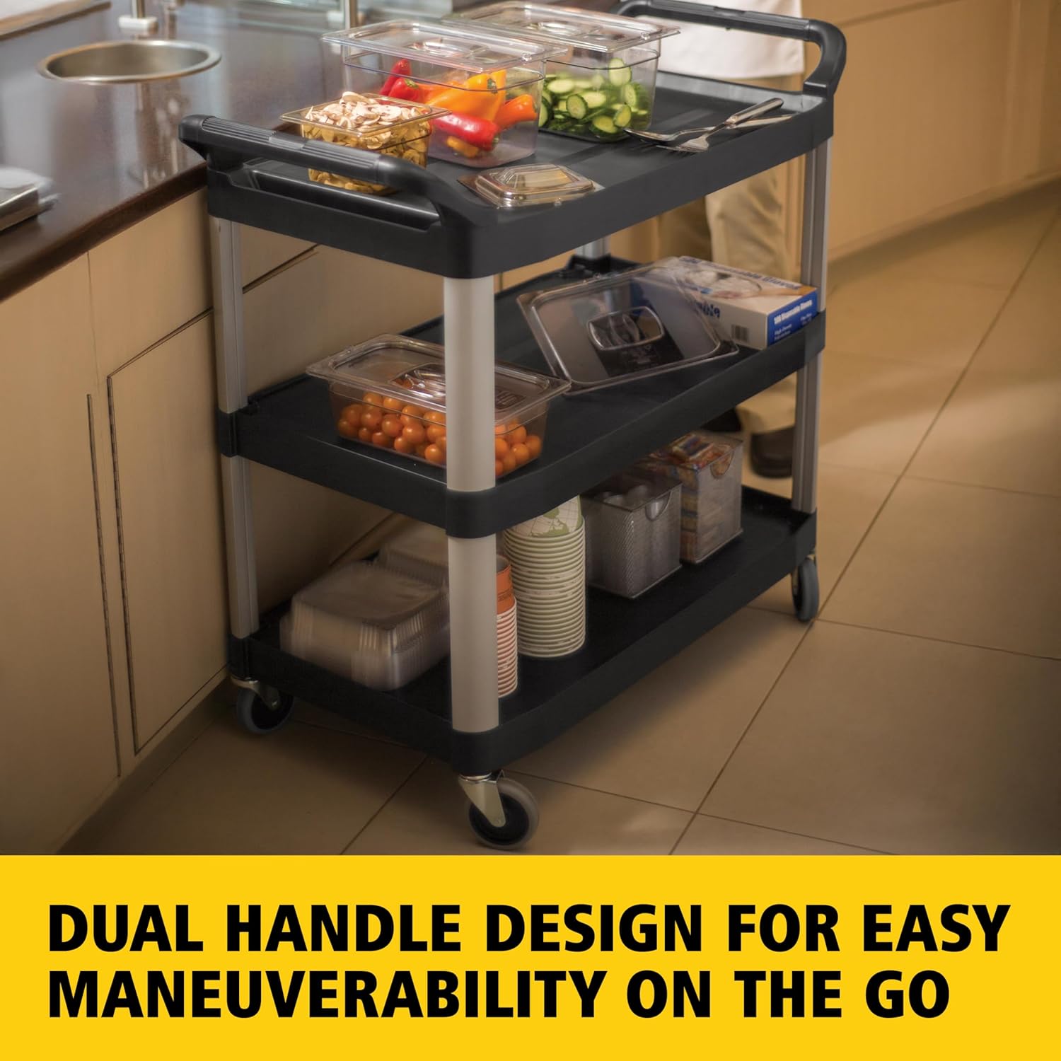 "The Rubbermaid commercial extra utility cart functions in front and back of house applications. Easy to clean surfaces4"" swivel casters for mobility easy grip handles measures 15-1/8"" x 20-3/4"" x 36""measures 15-1/8"" x 20-3/4"" x 36""".