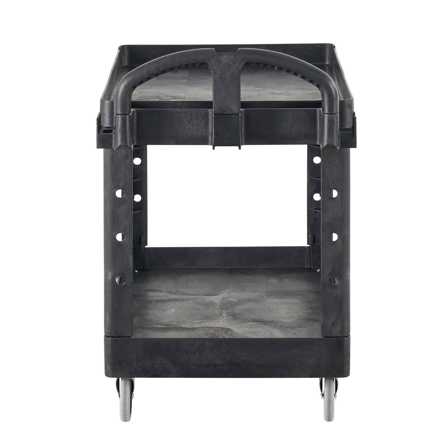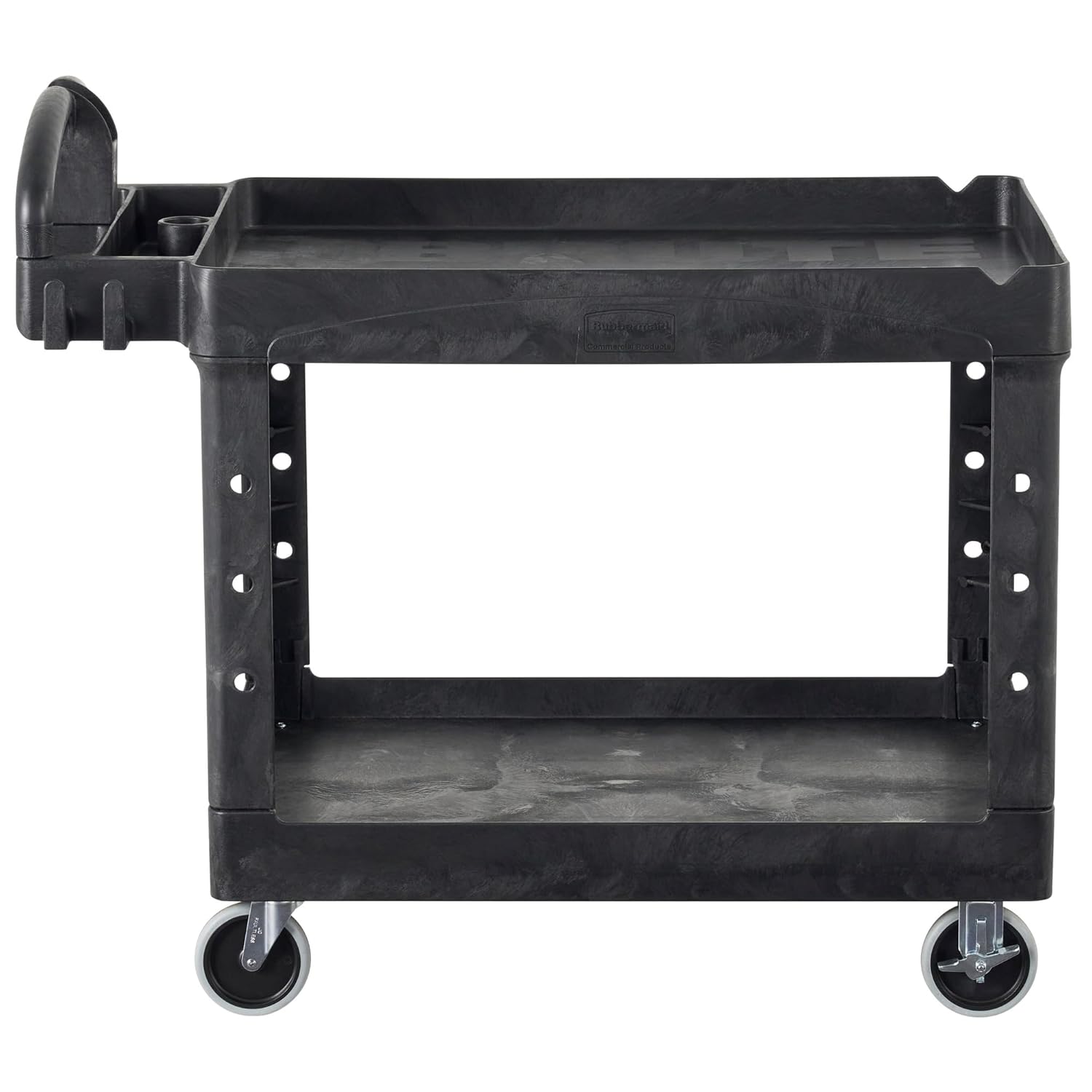 "Rubbermaid commercial heavy-duty utility cart is a versatile, durable cart that can support up to 500 lbs. Rounded corners protect walls and furniture lightweight and maneuverablelarge 5"" (12. 7 Cm) non-marking swivel casters ergonomically designed push handle provides optimum hand placement and push height improving control and worker safety ergonomically designed push handle provides optimum hand placement and push height improving control and worker safety".