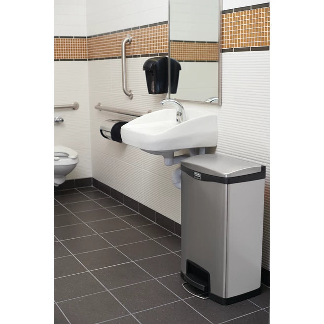 The Rubbermaid Commercial Impressions™ Step-On Container features a slim profile and small footprint to fit in tightest spaces. Impressions™ Step-On containers are constructed with premium-quality materials and meet the needs of any environment with efficiency, safety, and durability.