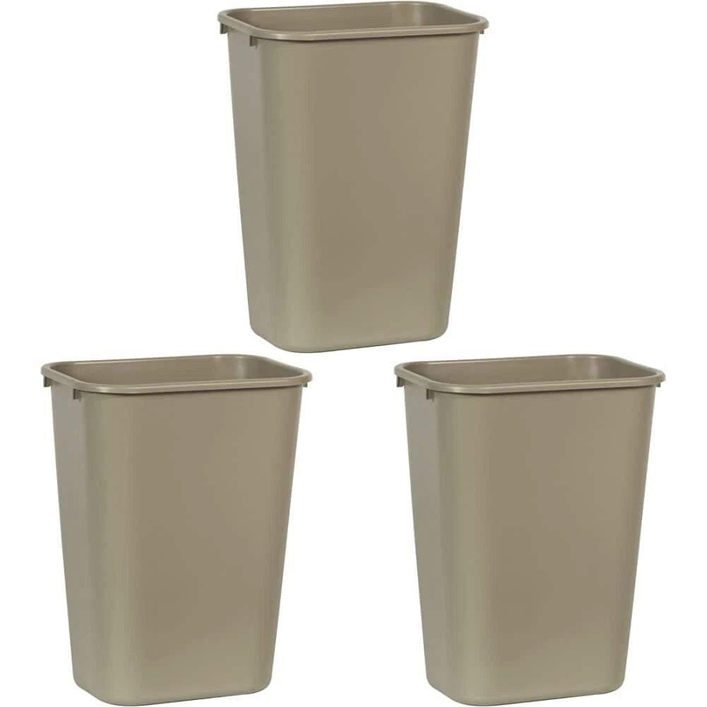 "Spacious large rectangular wastebasket made of durable, easy-to-clean plastic. With a generous capacity (e.g. ~28–45 qt depending on model), it’s perfect for offices, kitchens, or shared spaces. Neutral design and shape make it functional for everyday trash disposal."