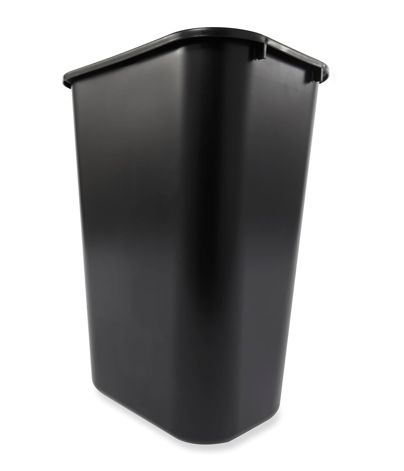Space-efficient, economical and an easy and an effective way to recycle. All-plastic construction won’t chip, rust or dent. Rolled rims add strength and are easy to clean fits under standard-height desk even when swing top is fully extended recycling options available.