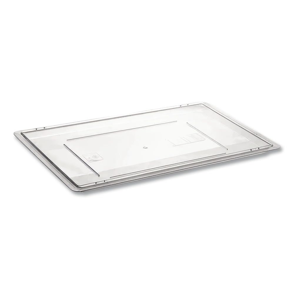 "The Rubbermaid Commercial Food Storage Lid for Food Tote Box helps reduce food spoilage costs.Crystal-clear material provides visibility, durability and stain-resistanceTight-fitting, snap-on lid keeps food secureDate control panels for easy inventory controlMeasures 18"" W x 26"" LWARNING: Reproductive Harm - www.P65W".