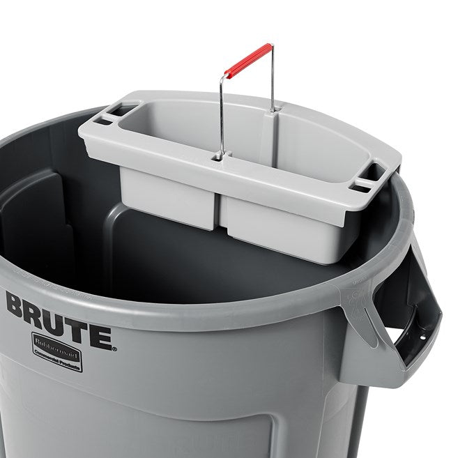 Heavy-duty caddy conveniently snaps into BRUTE 44G containers keeping cleaning supplies at hand while collecting waste.