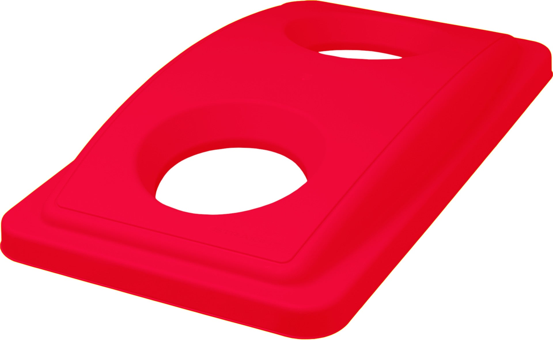 durable polypropylene that can withstand frequent daily use in busy environments and compatible with Slim Jim bins, the Slim Cans/Bottles Lid provides the perfect solution to effective waste separation. Featuring distinctive red colouring ideal for colour-coded refuse sortation systems and two convenient apertures that allow for the disposal of cans, bottles, jars, and more, the Slim Cans/Bottles Lid actively promotes effective disposal and recycling practices.