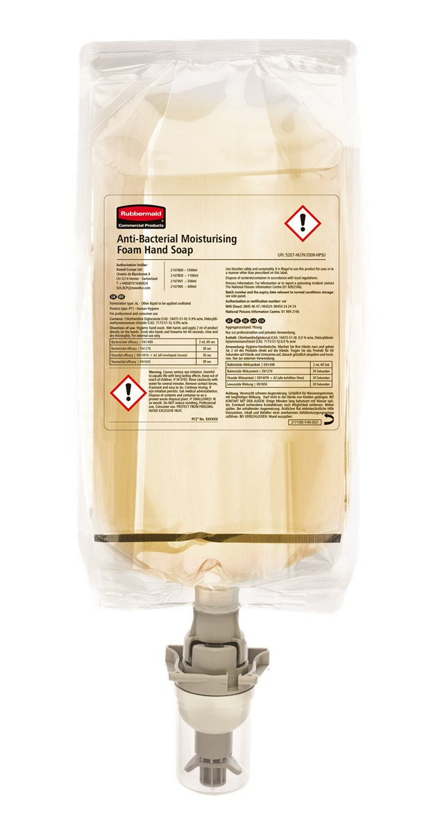 The Rubbermaid AFM AB 1100 TC is an antibacterial foam soap refill designed for use with the Rubbermaid AutoFoam Touch-Free Dispenser system. It delivers a rich, luxurious foam that gently cleans hands while reducing bacteria, making it ideal for commercial washrooms, offices, hospitals, and food-service areas.